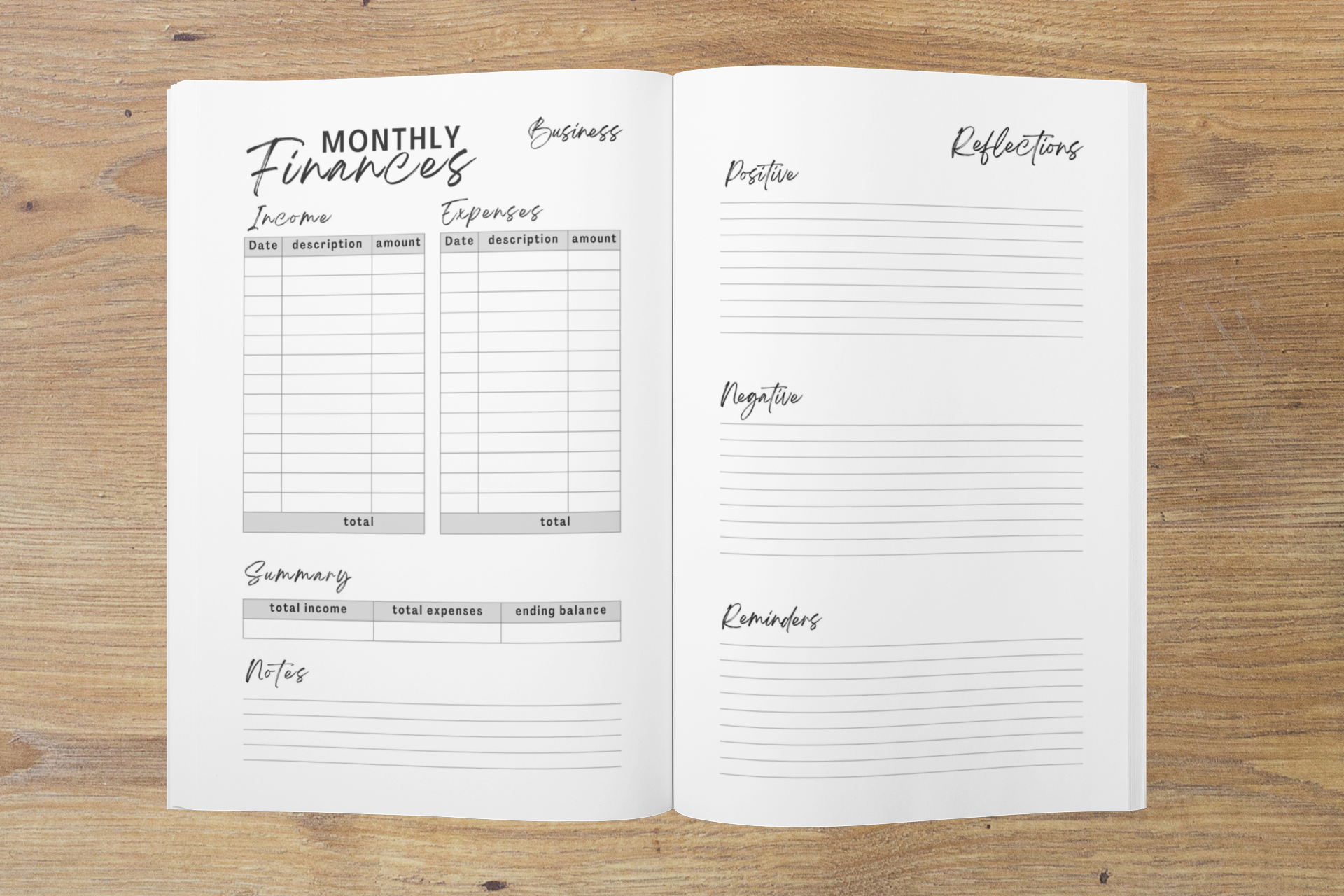Elevate yourself through monthly reflections. The reflective exercises in our planner encourage you to celebrate victories, analyze challenges, and fine-tune your strategies. Elevate your entrepreneurial game – order now and step into a future of boundless success!